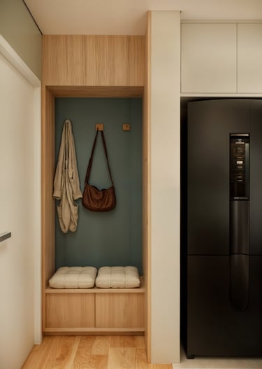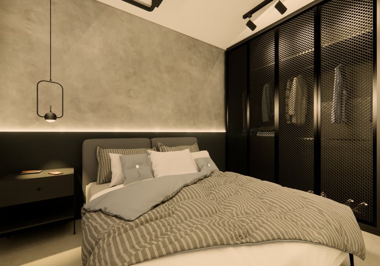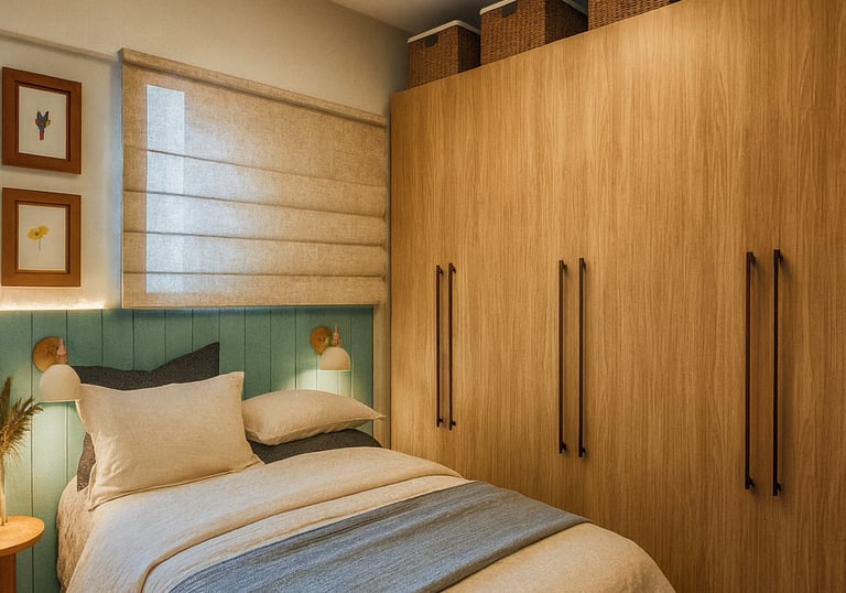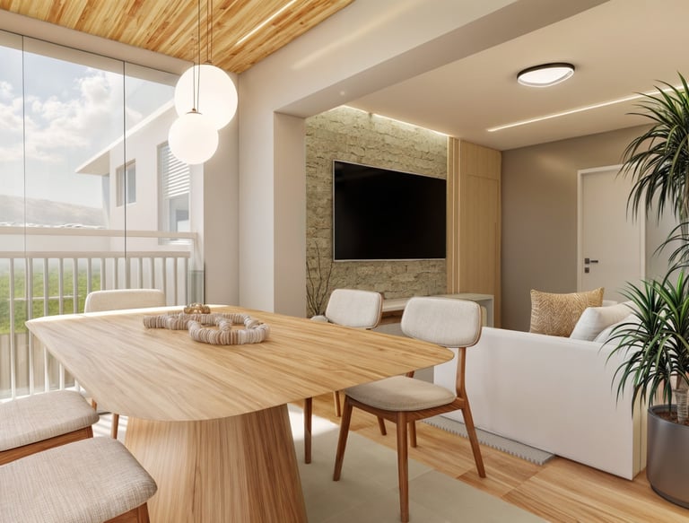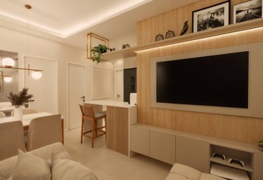 Design de interiores que une conforto e estilo, ideal para seu primeiro apartamento.